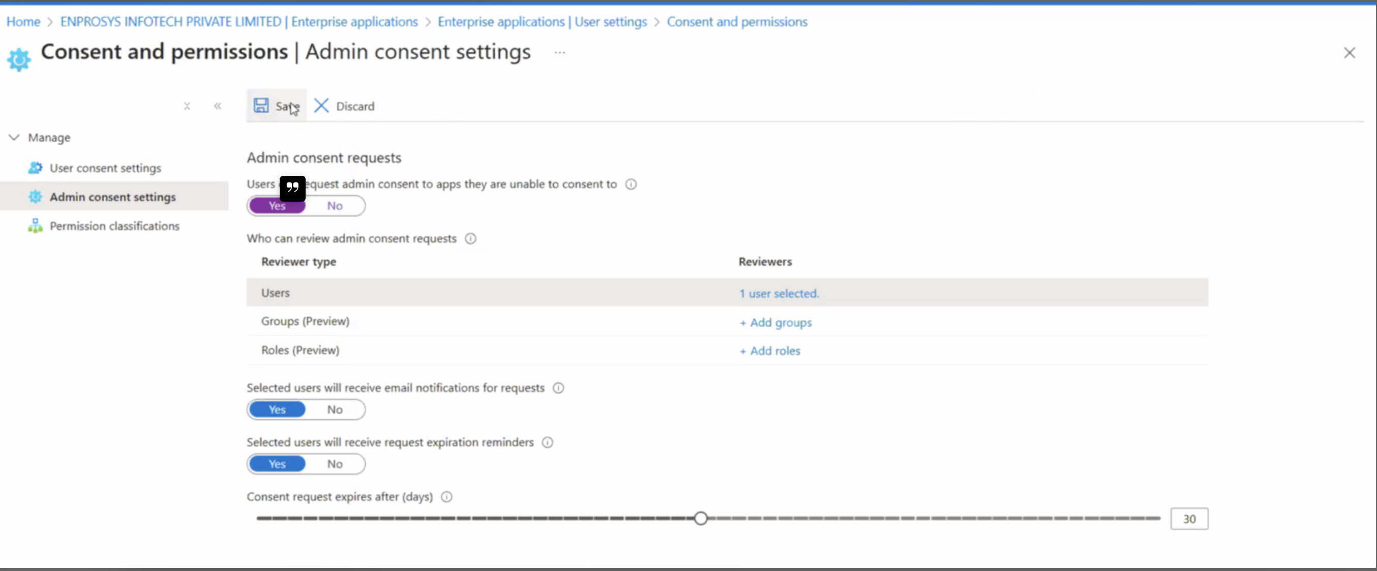 Step2: Click on Enterprise Applications, and go to Admin Consent Requests