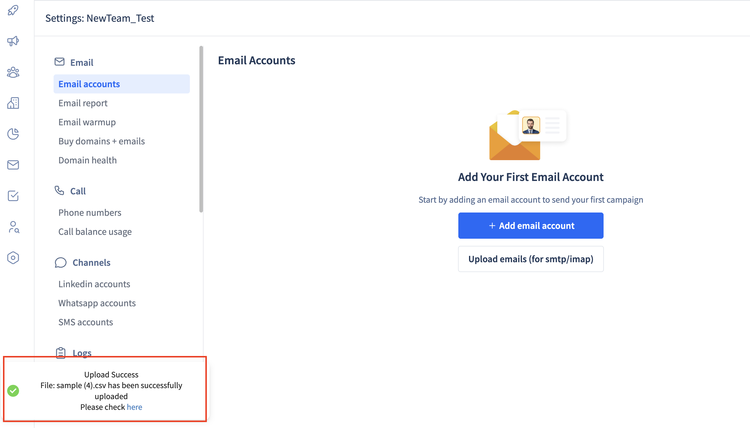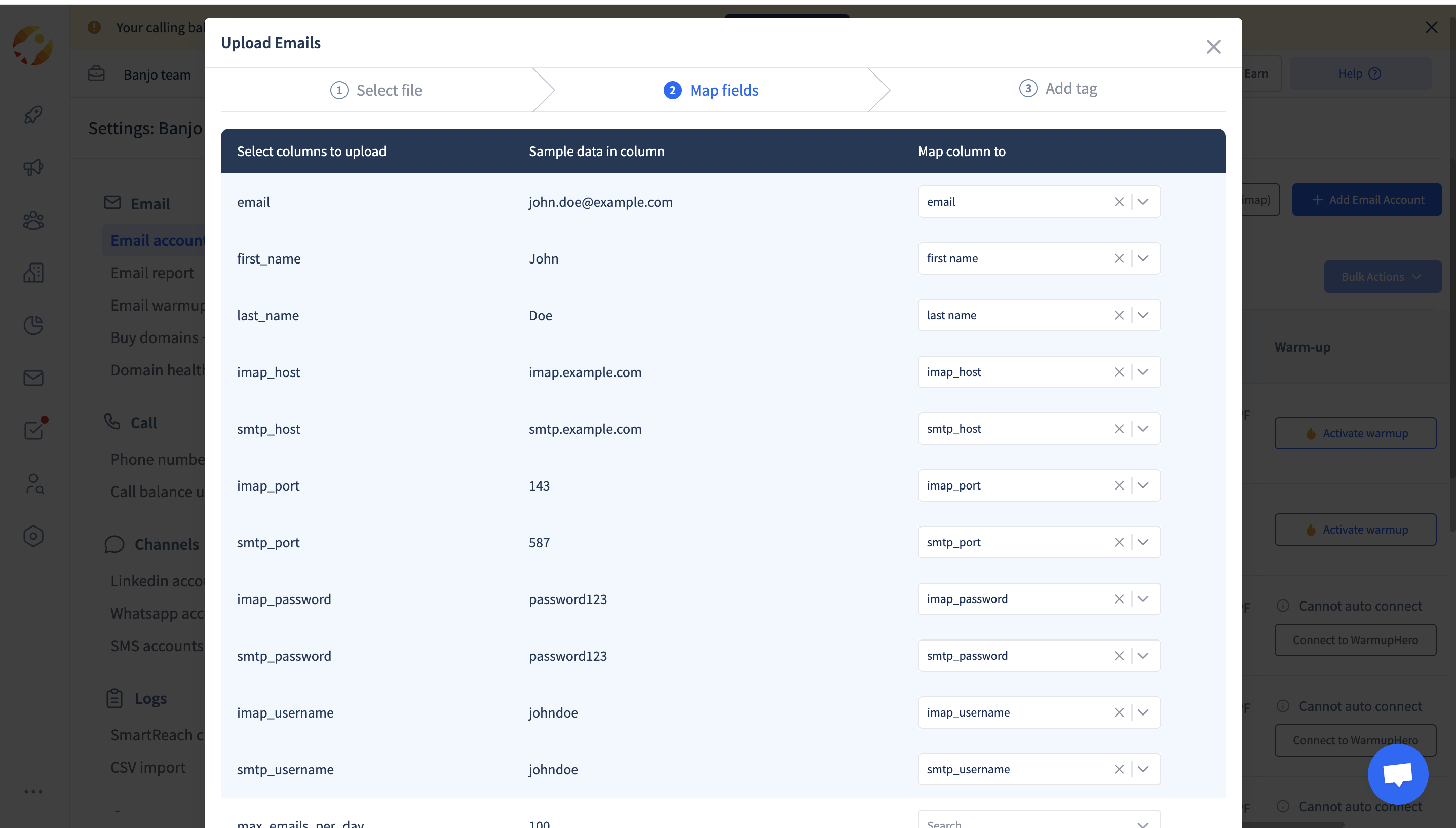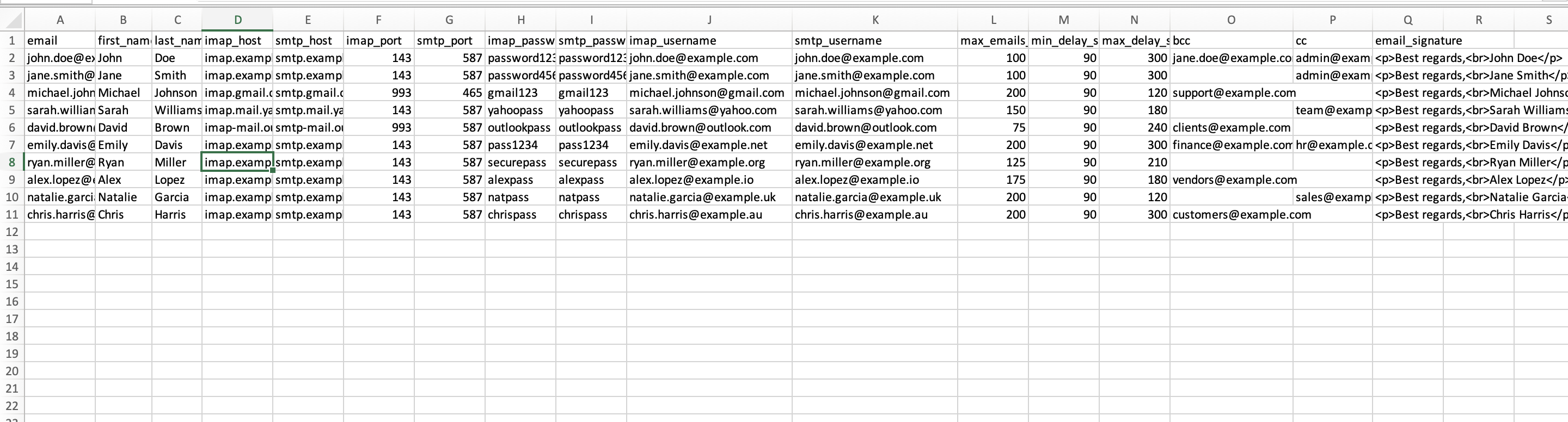 Configure SMTP/IMAP Accounts (Bulk Upload Emails via CSV)