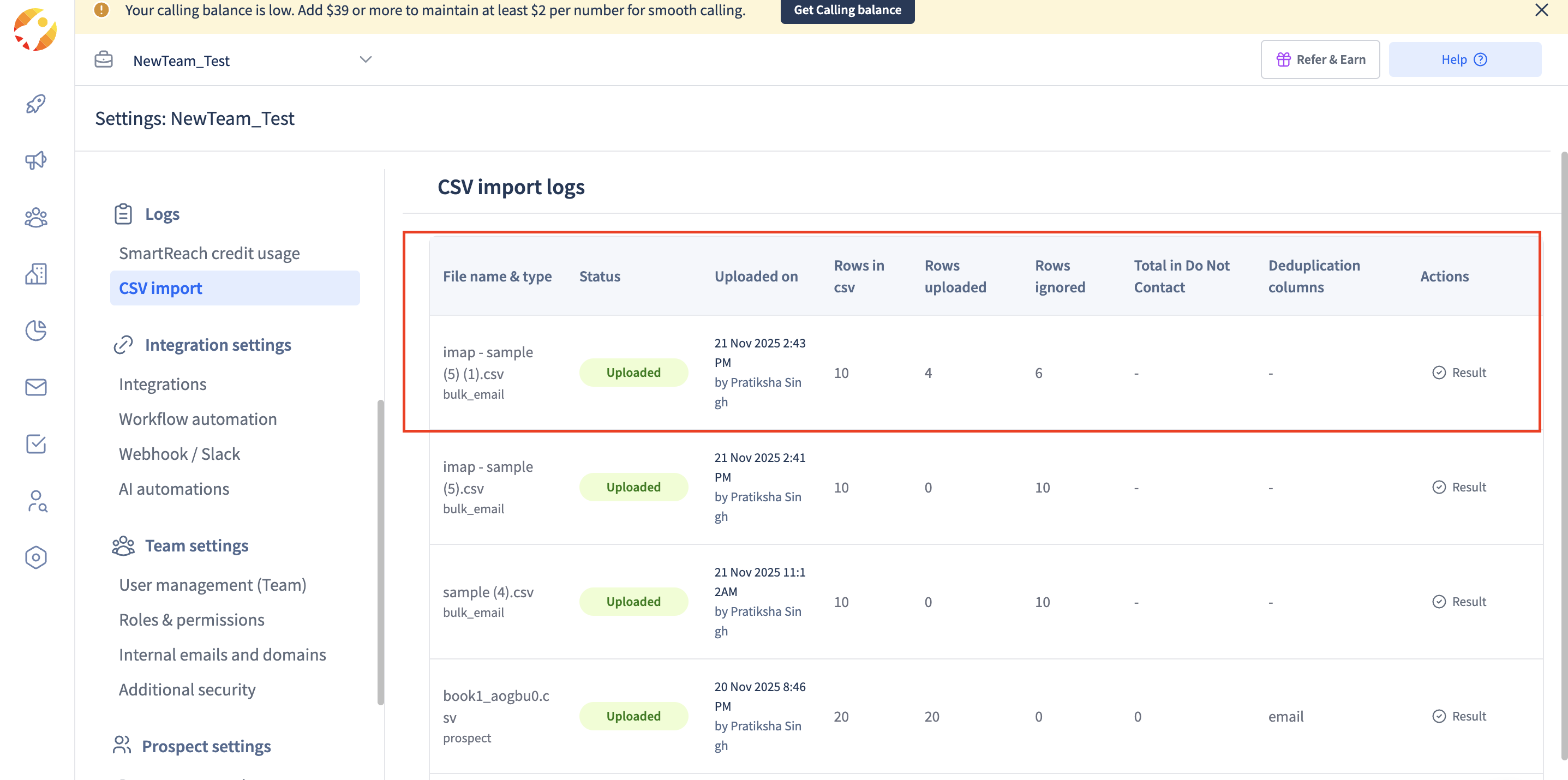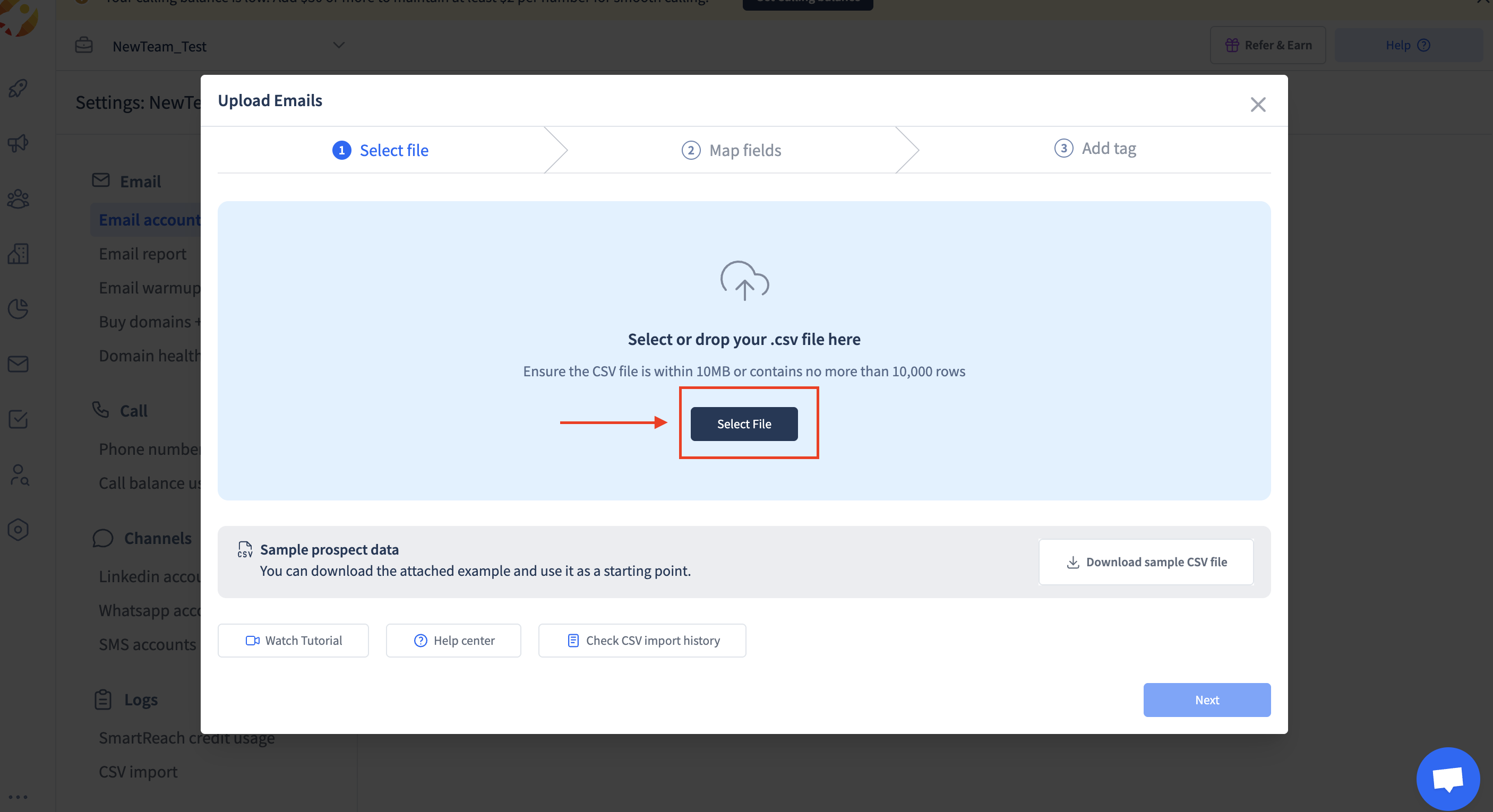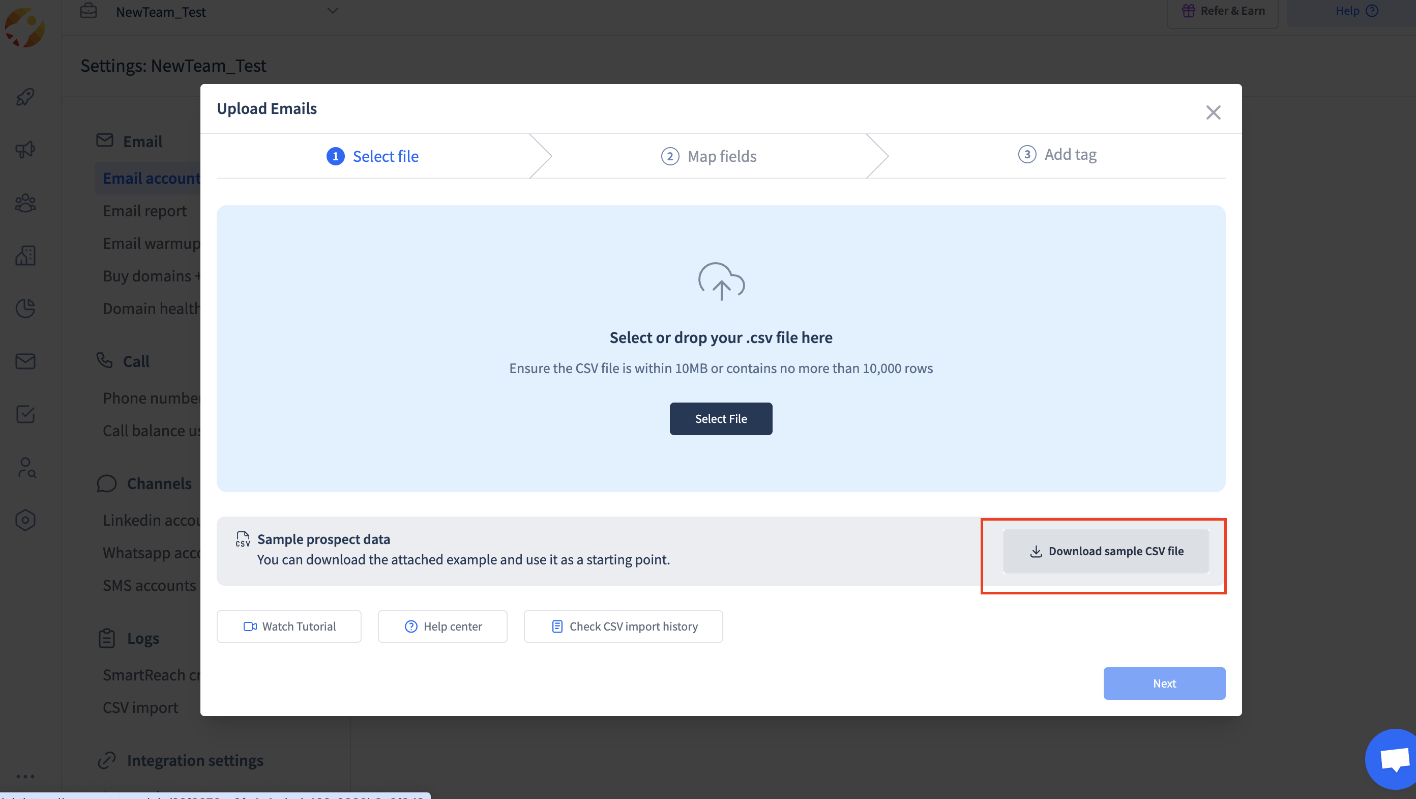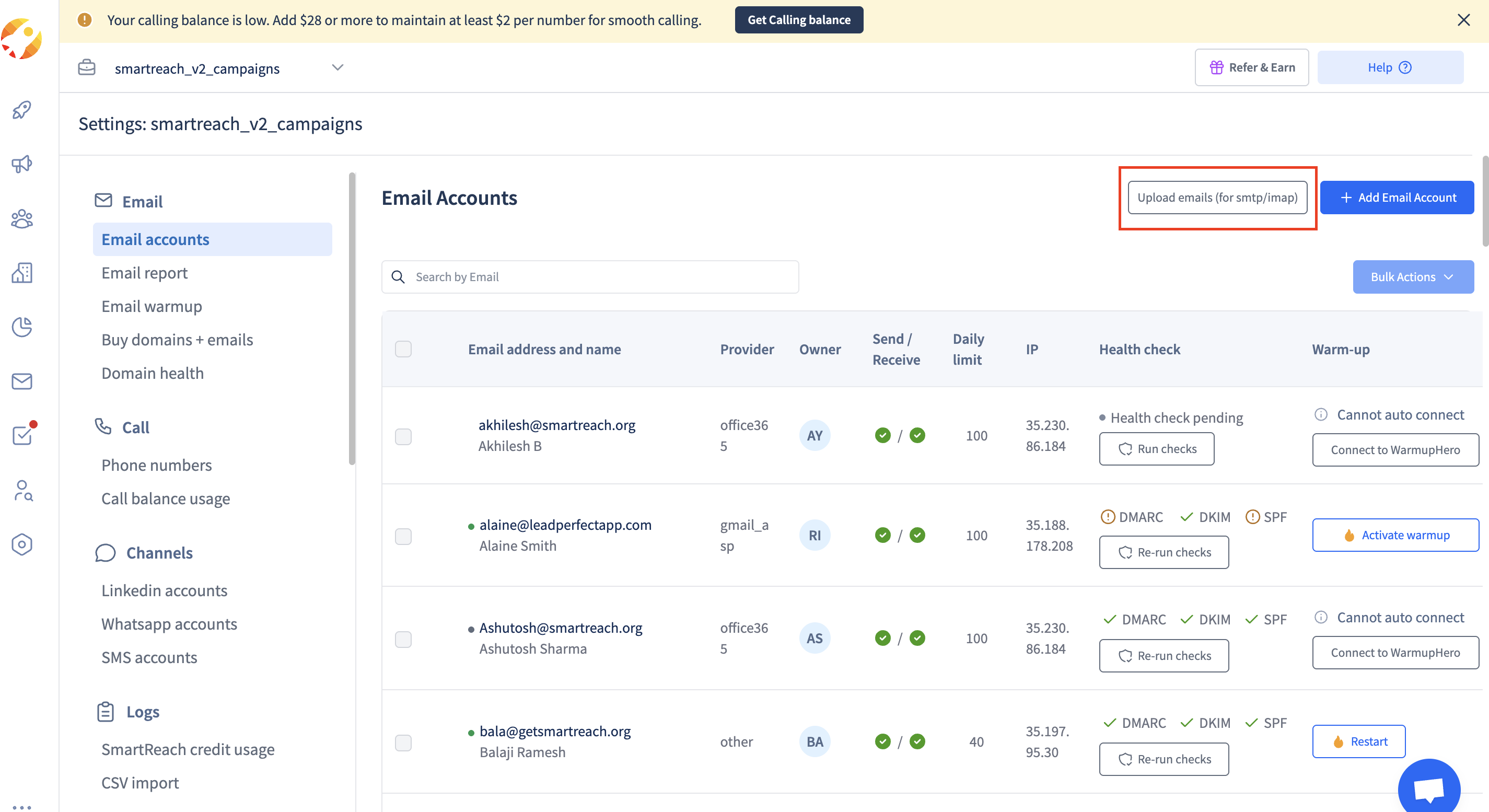 Configure SMTP/IMAP Accounts (Bulk Upload Emails via CSV)