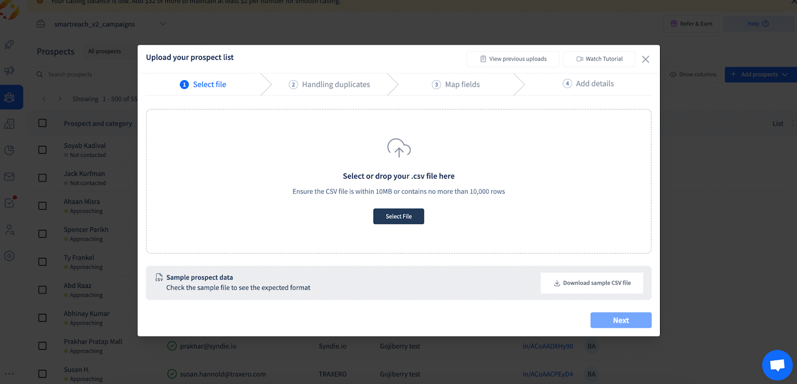 - In SmartReach, go to Prospects > Import Prospects