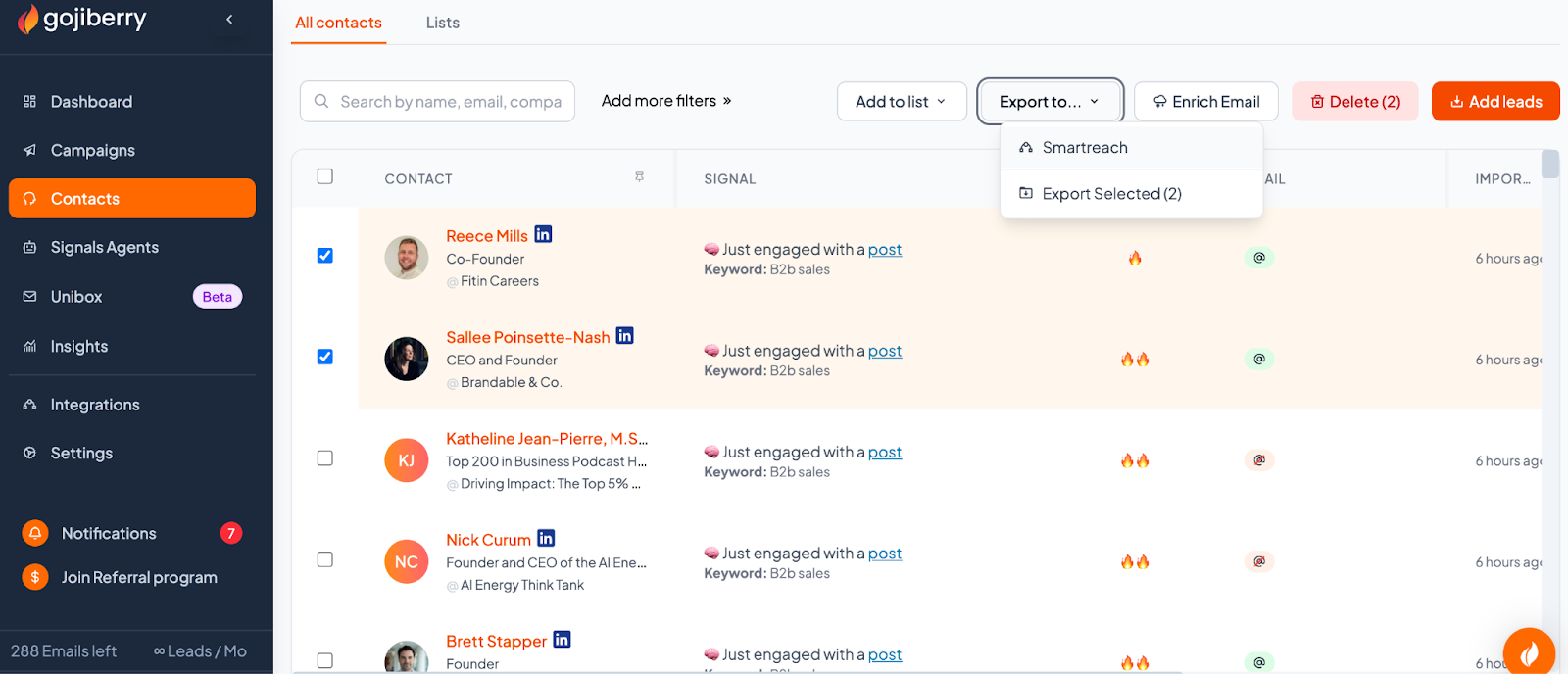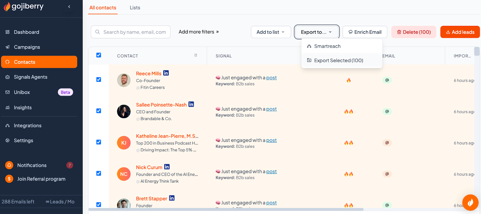 - Transfer leads directly from Gojiberry.ai to SmartReach campaigns