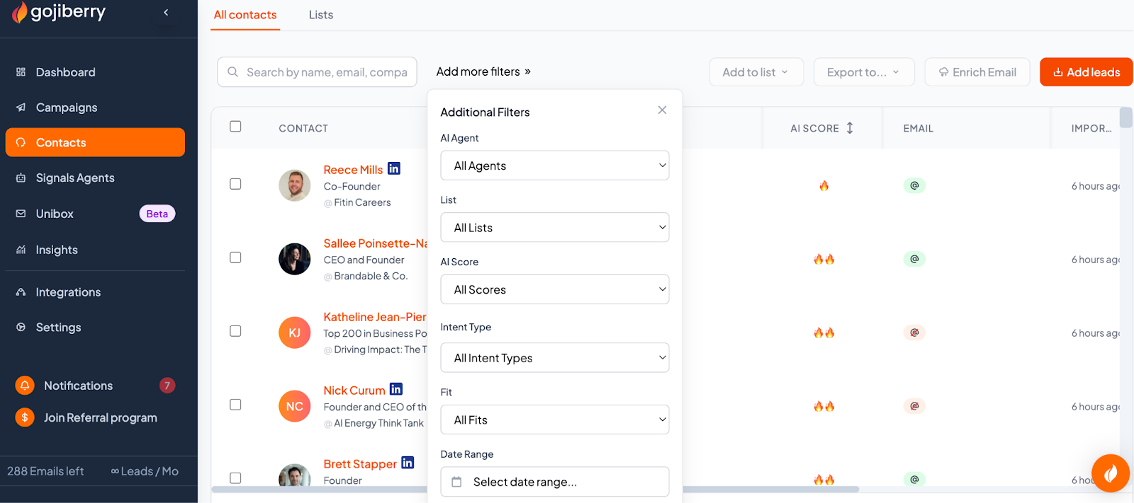 - In Gojiberry.ai, go to Contacts
