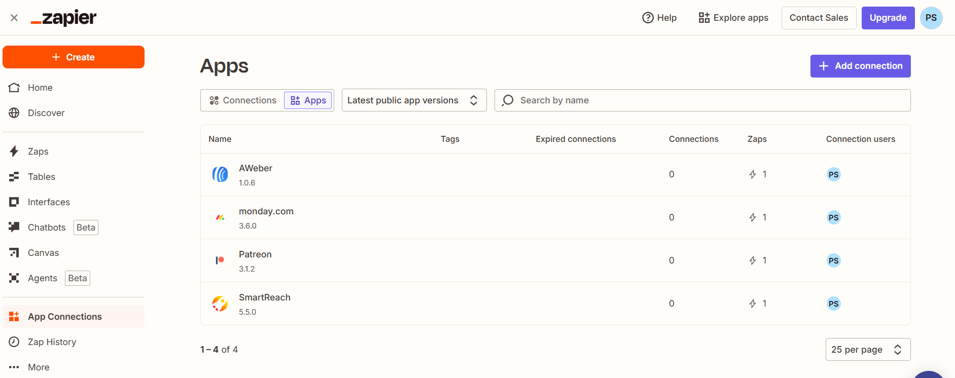 - Select Add Connection, search for SmartReach, and paste your API key to connect.