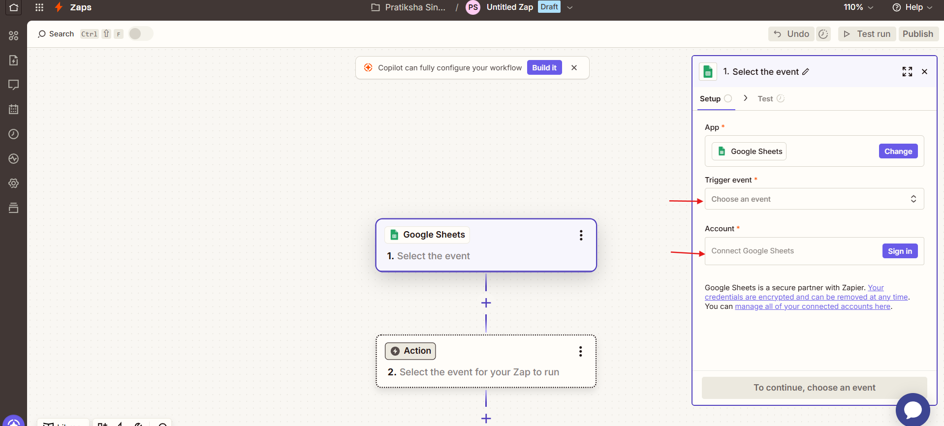 - Choose New or Updated Spreadsheet Row as the trigger event.