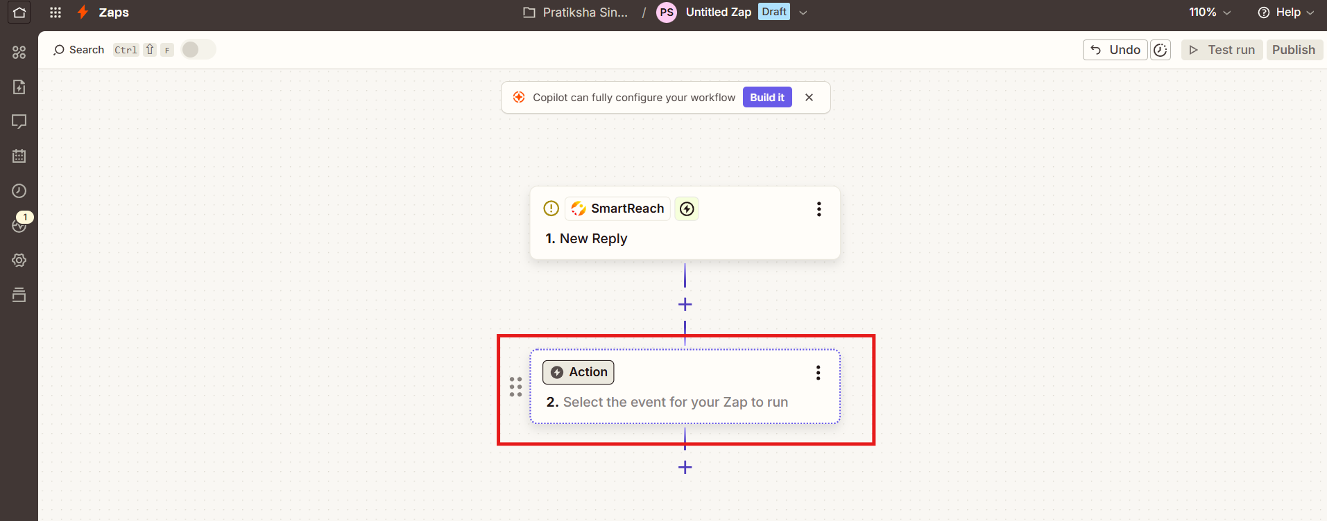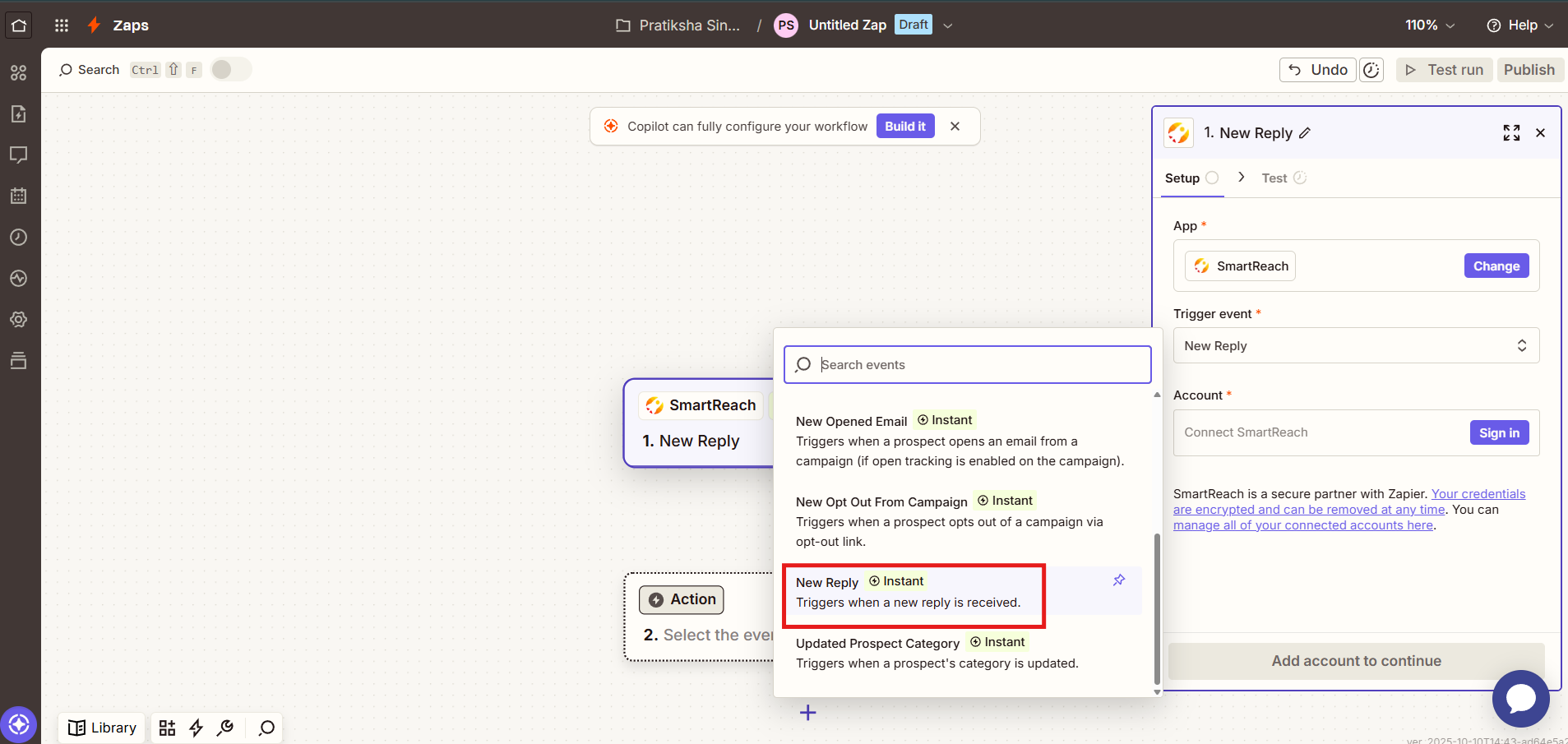 - Choose a trigger event, such as "New Reply" (for when a prospect replies to a campaign email).