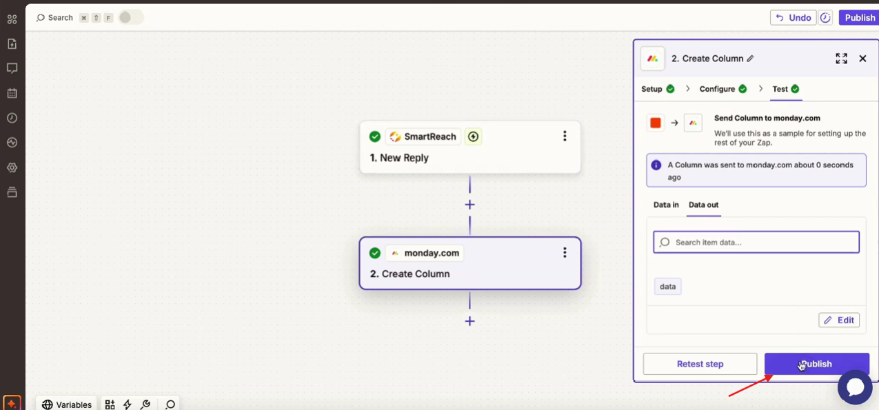 - This will automatically detect replies in SmartReach and prepare to send data to Monday.com