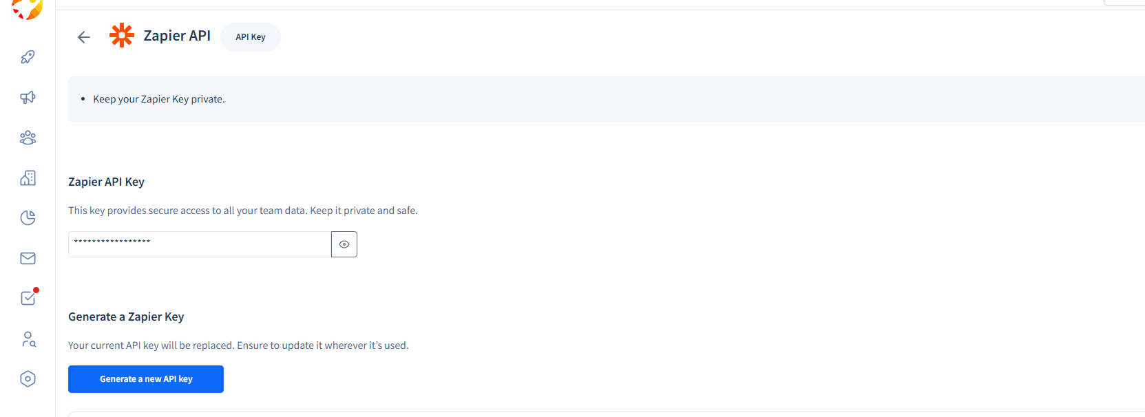 - Paste the API key into Zapier to authenticate and connect the accounts.