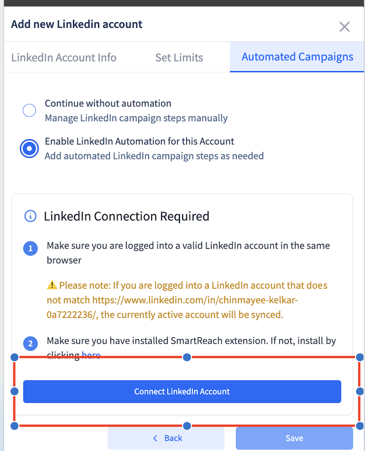How to connect a LinkedIn account on SmartReach for full automations?
