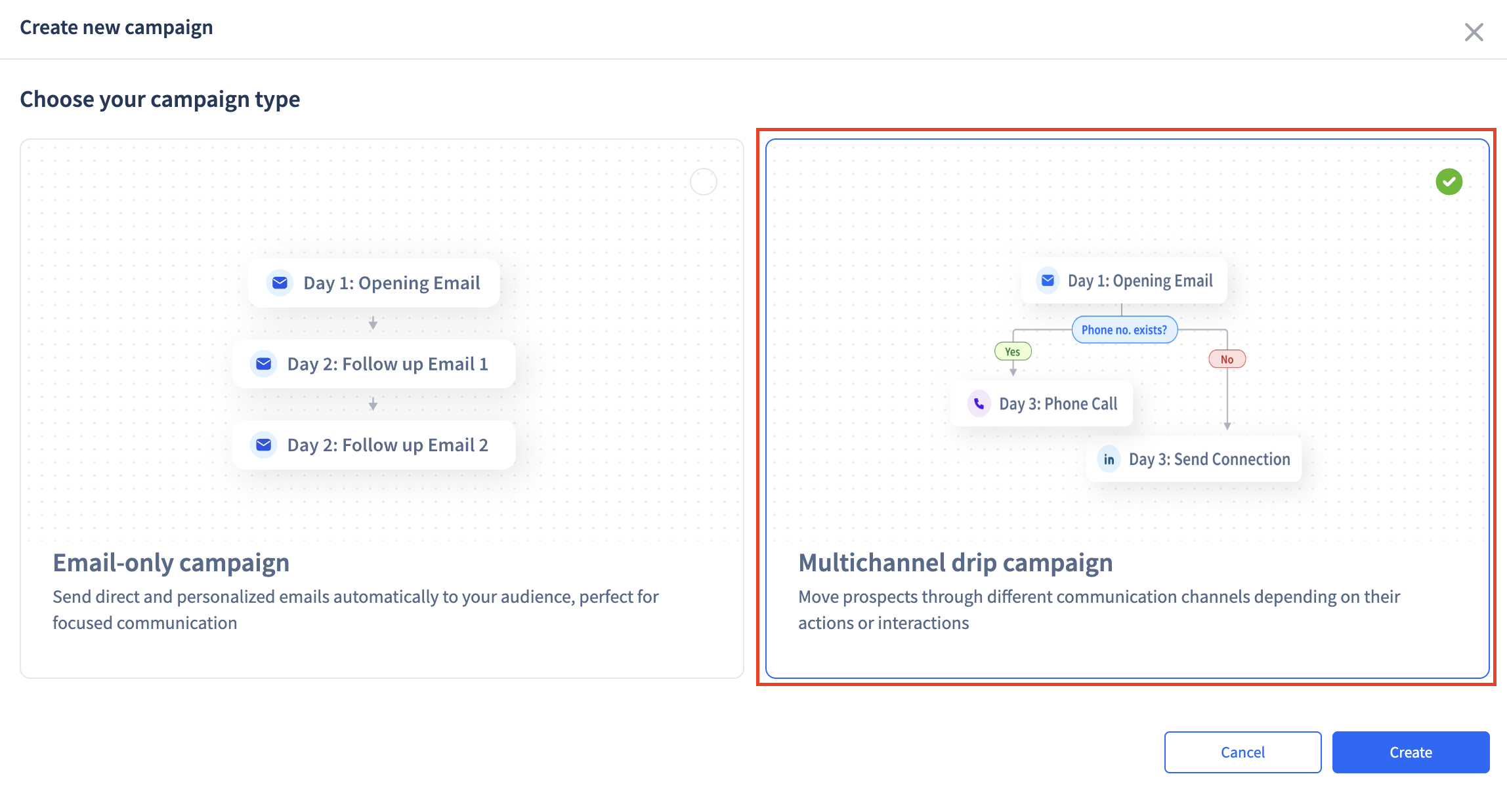 Learn how to create multichannel drip campaigns in SmartReach. Automate email, LinkedIn, and call workflows based on prospect actions.