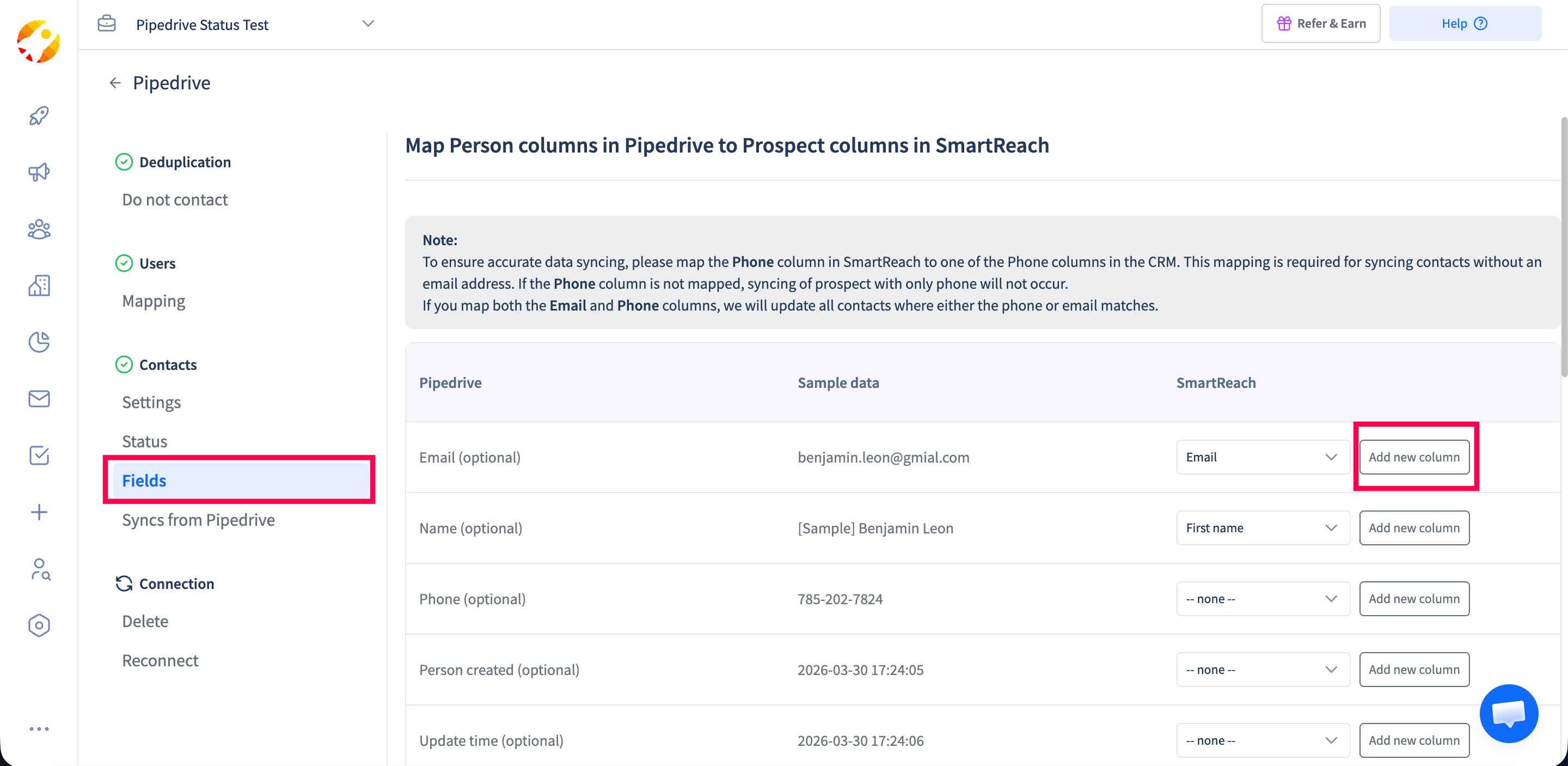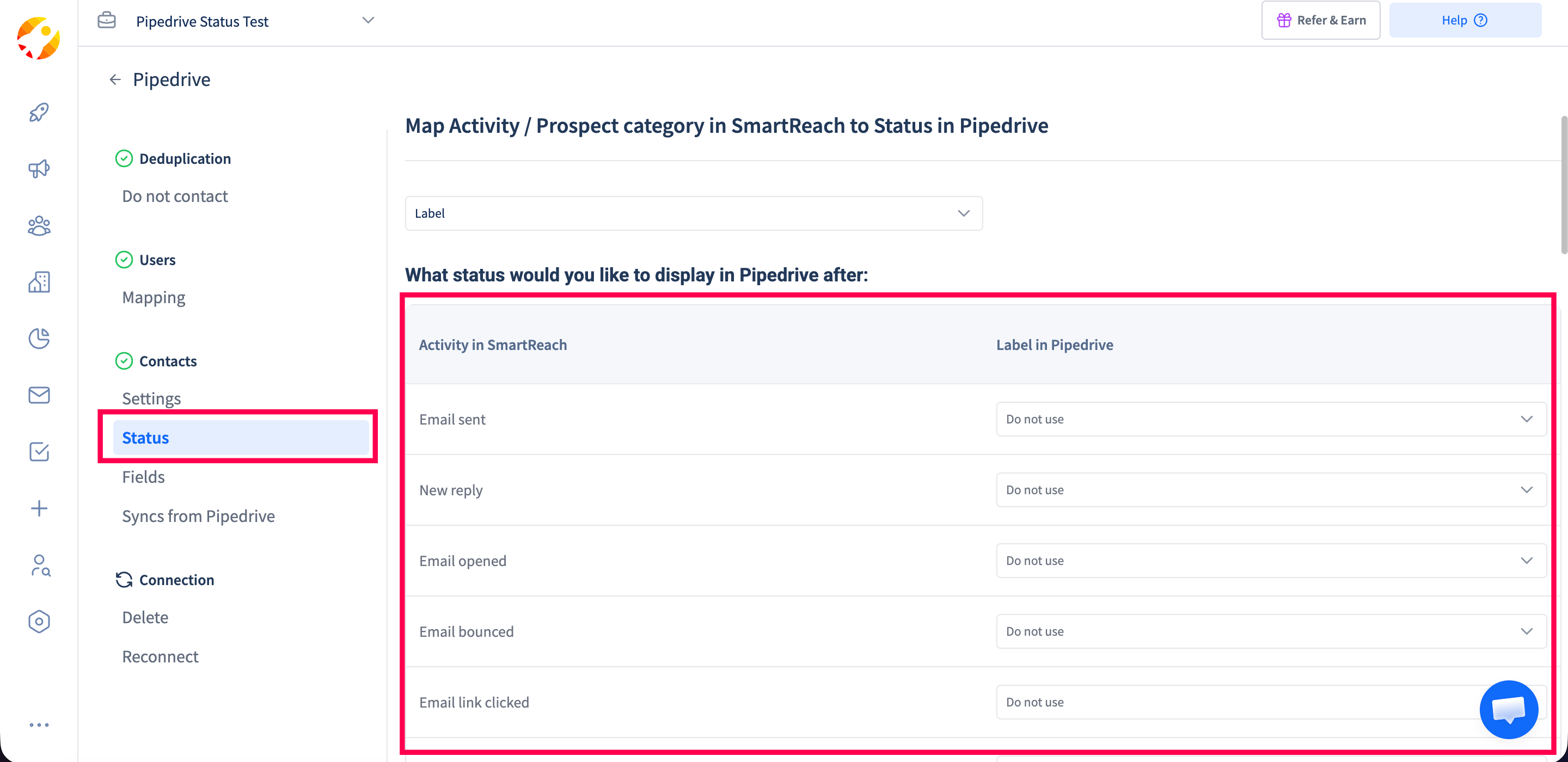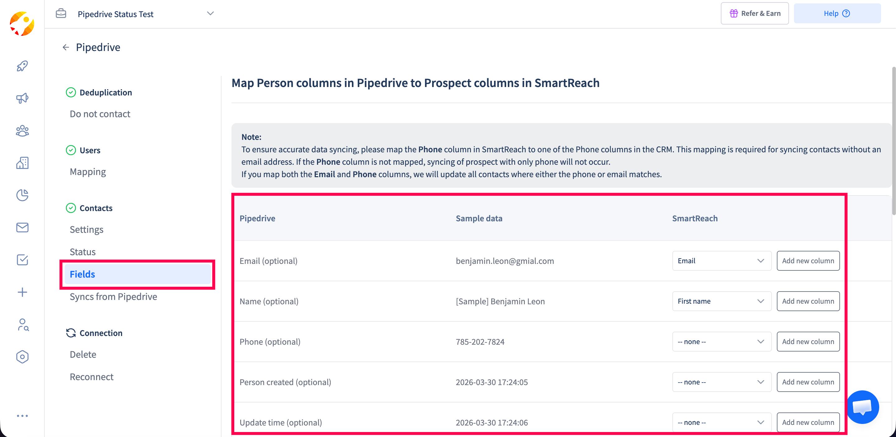 This completes the process of mapping the data between Pipedrive and SmartReach.