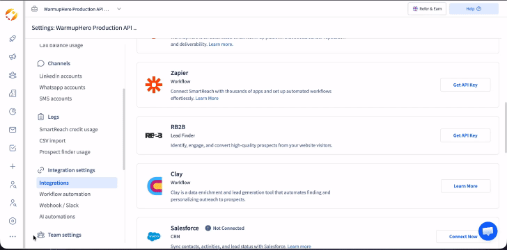 SmartReach to Pipedrive connection Steps: