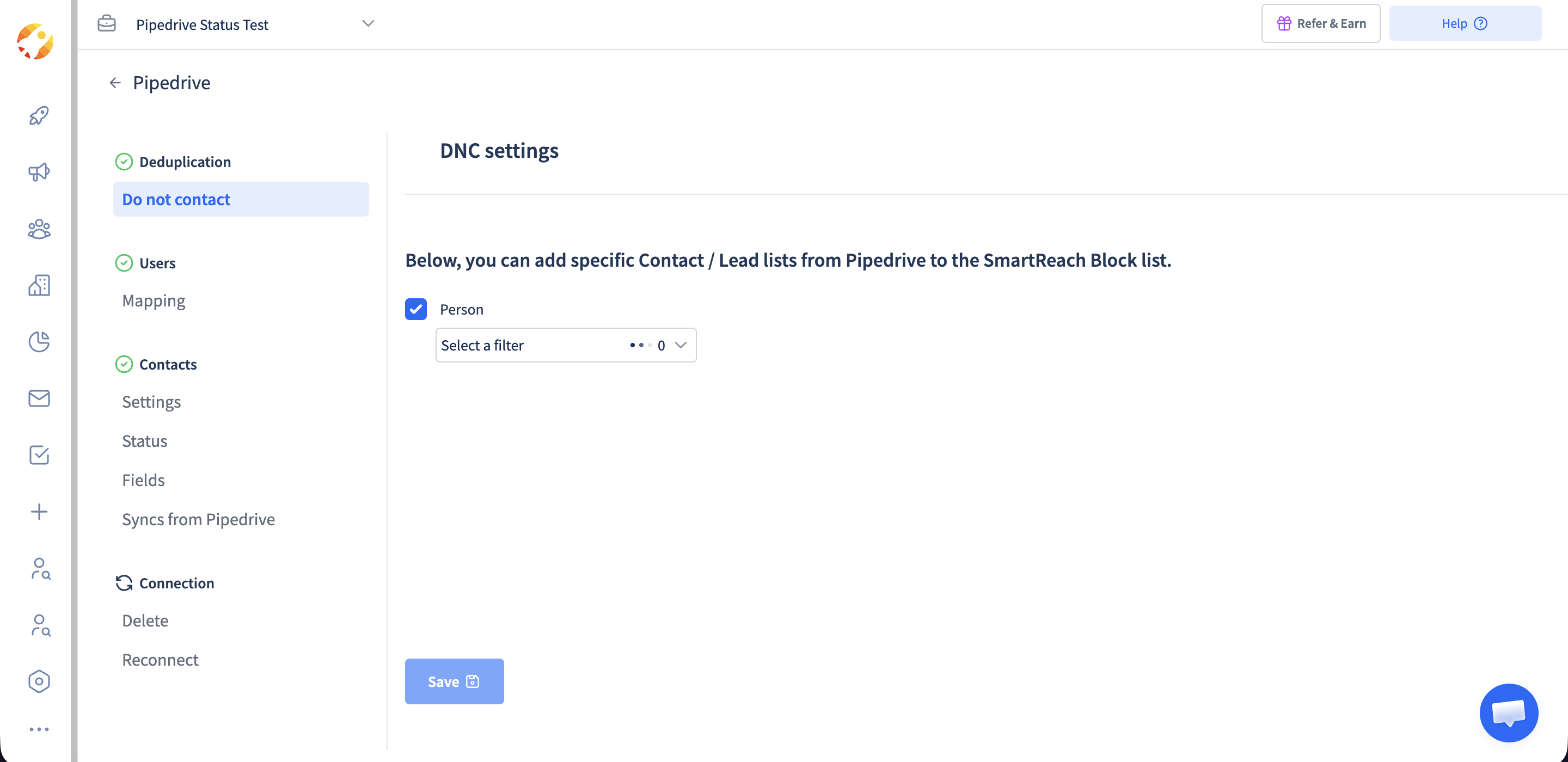 Do Not Contact List: Easily add specific Contact / Lead lists from Pipedrive to the SmartReach Do Not Contact list