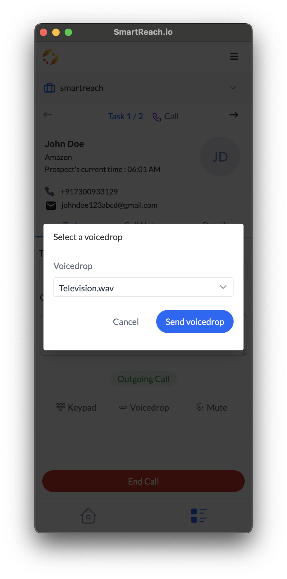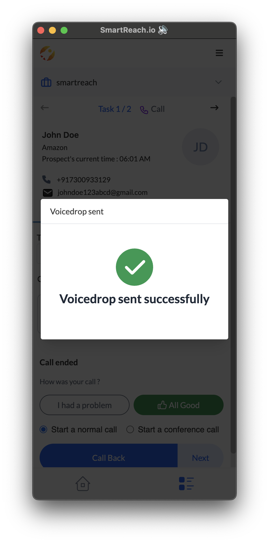 SmartReach.io now offers a Voicedrop feature, allowing users to leave pre-recorded messages for prospects. This helps in increasing engagement and ensuring your message reaches the prospect, even if they don’t answer the call.