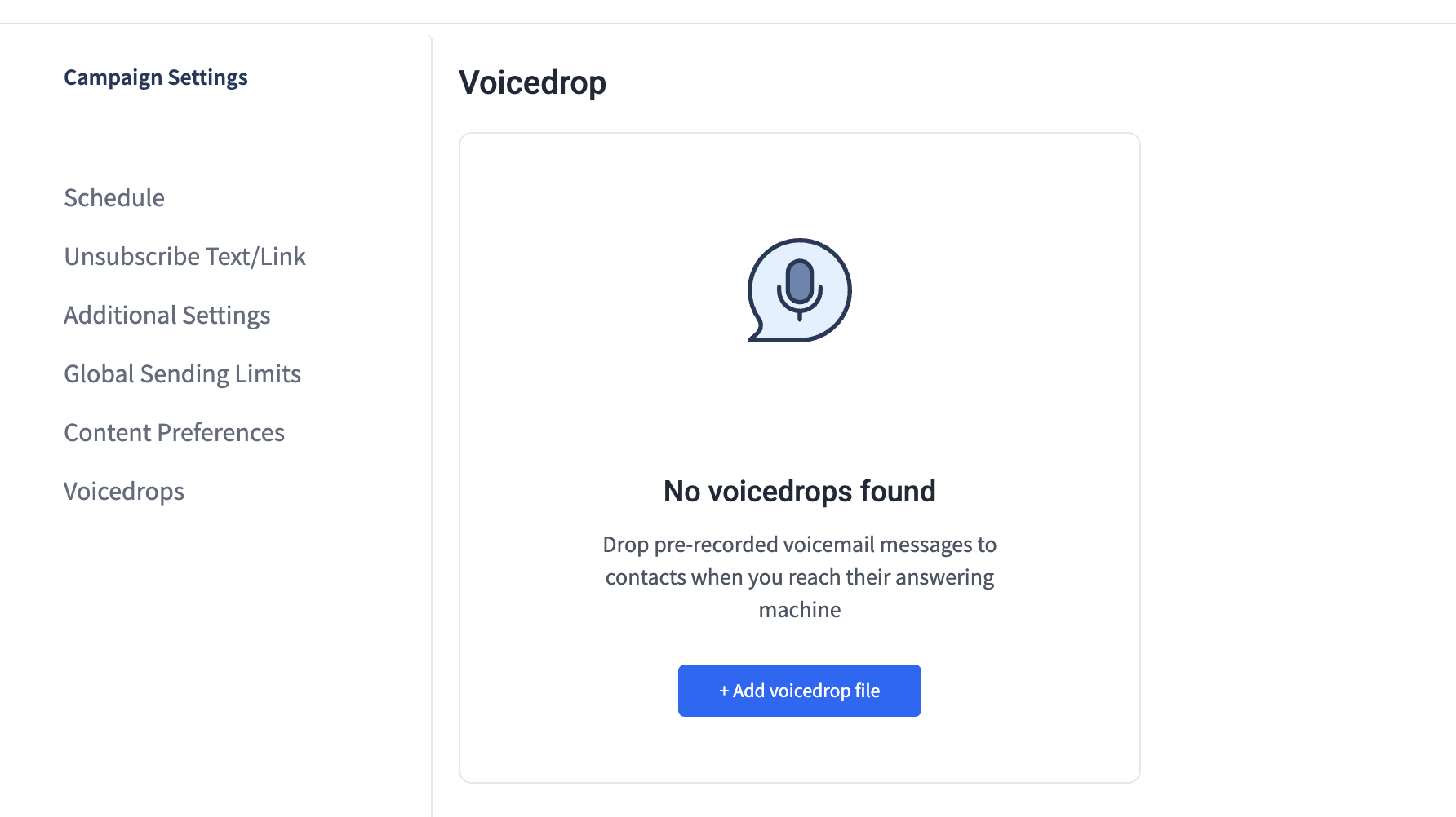 - If you already have a campaign, go to Campaign Settings > Voicedrop.