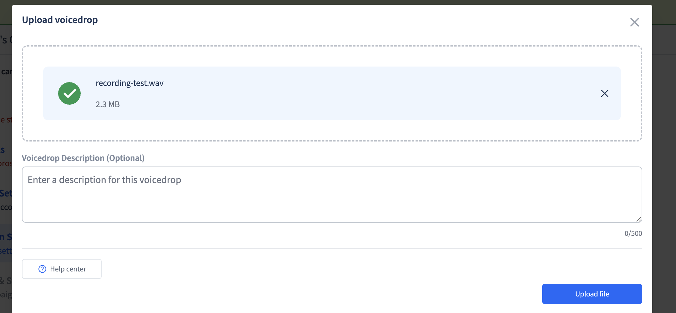 - You can add up to 2 Voicedrop per campaign (delete previous ones if needed).