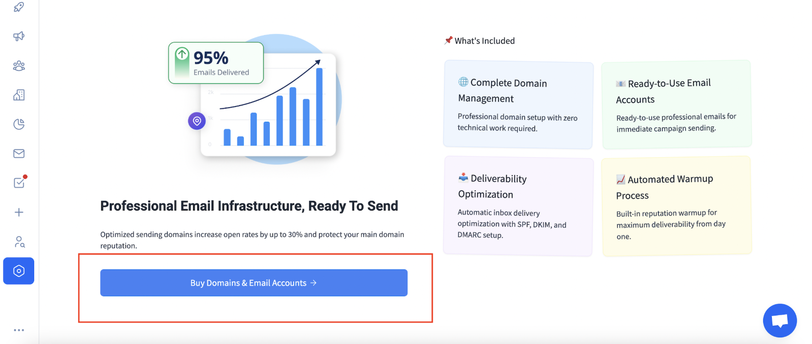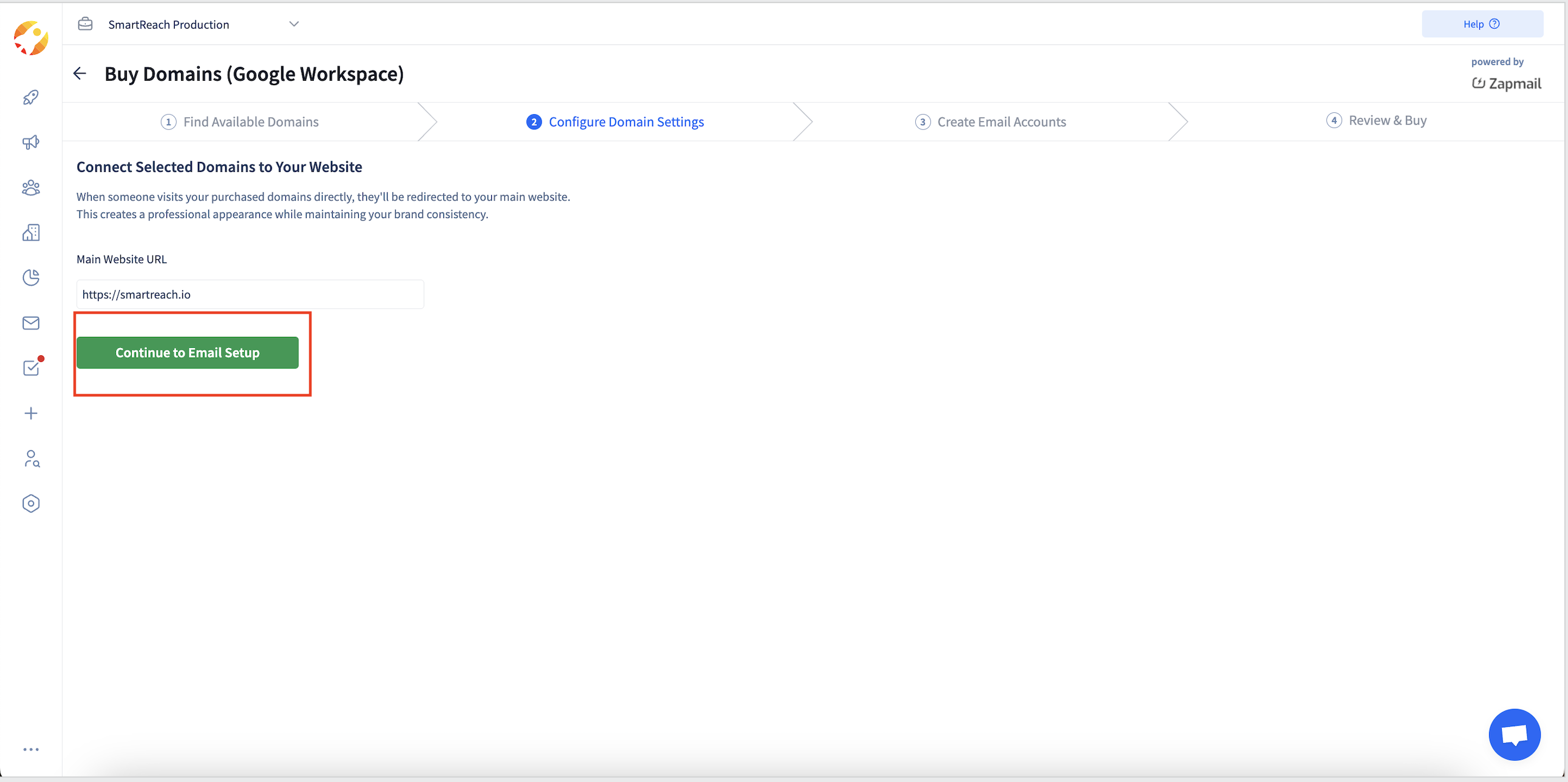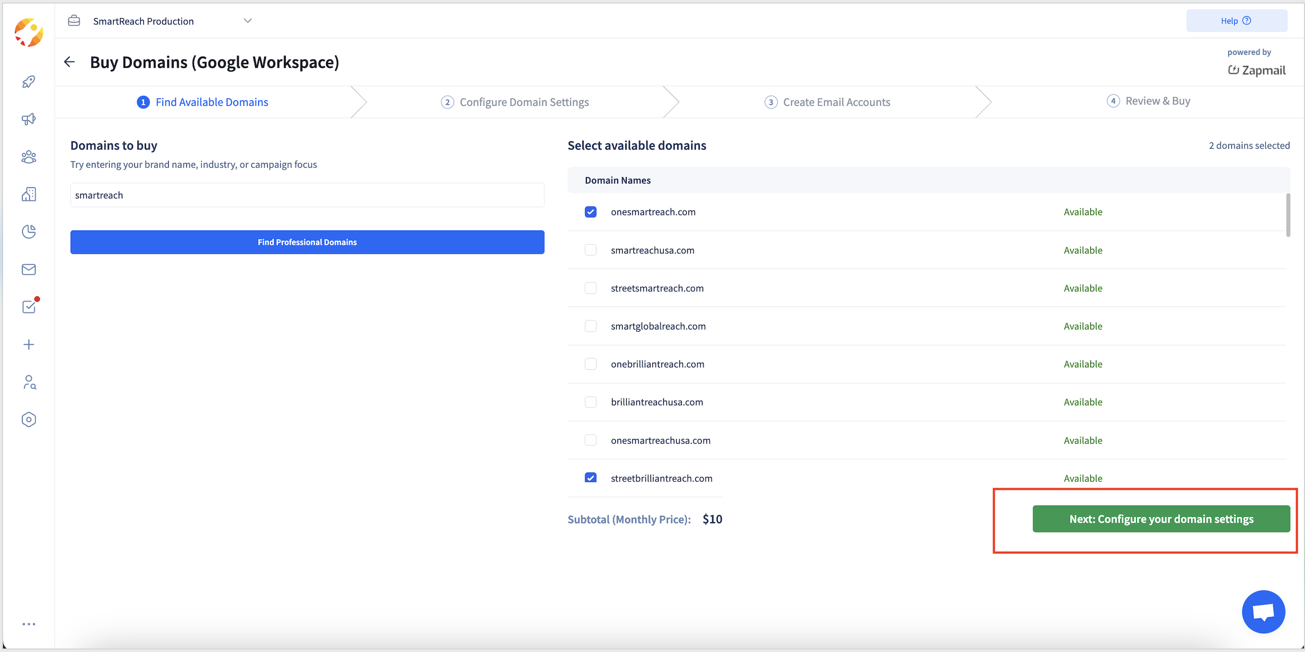 Step 2 Click Buy domains and email accounts. Here select the appropriate provider either Zapmail or Maildoso.