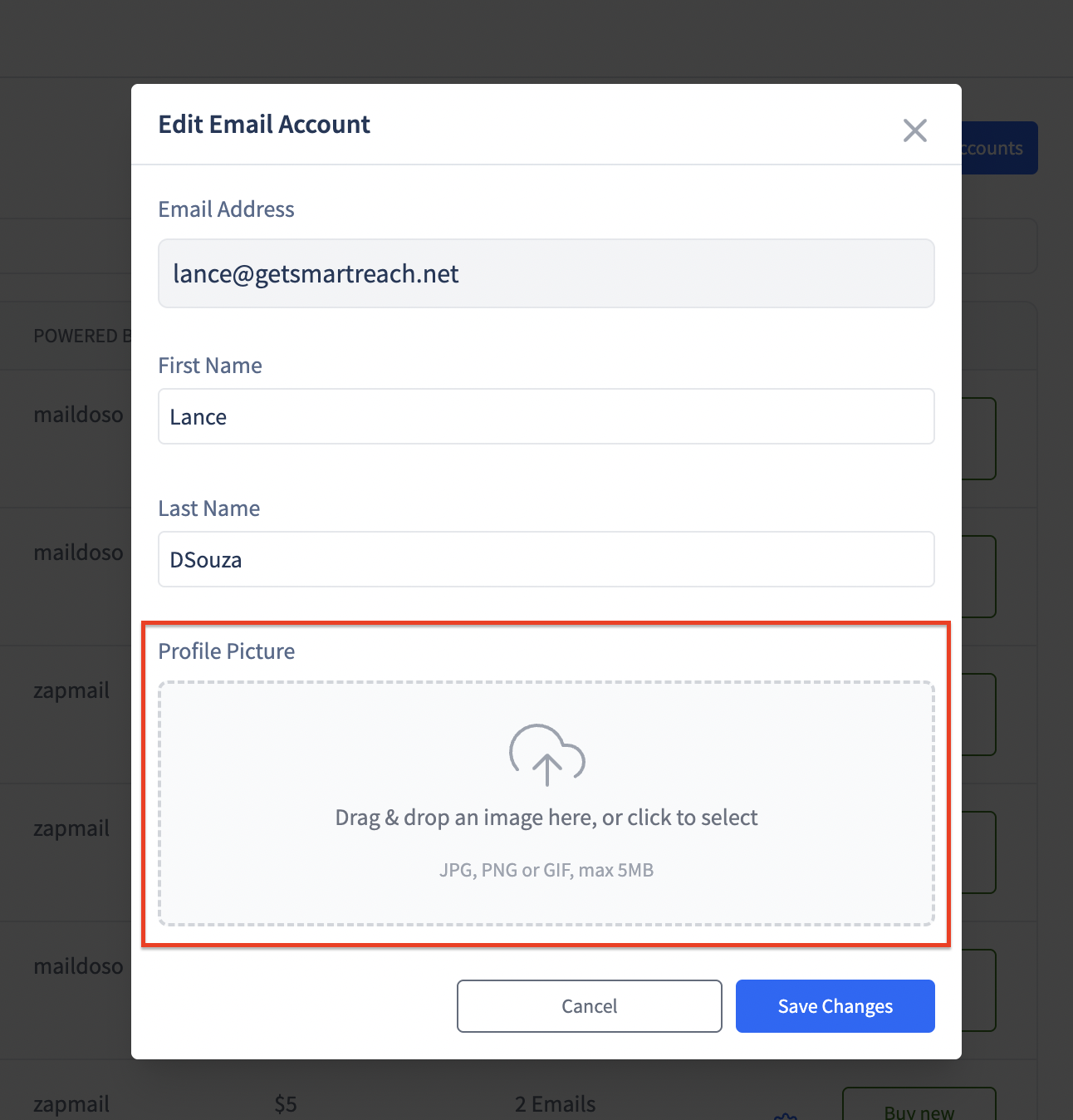 You can add a profile picture on the emails that you have purchased from Zapmail in SmartReach.io