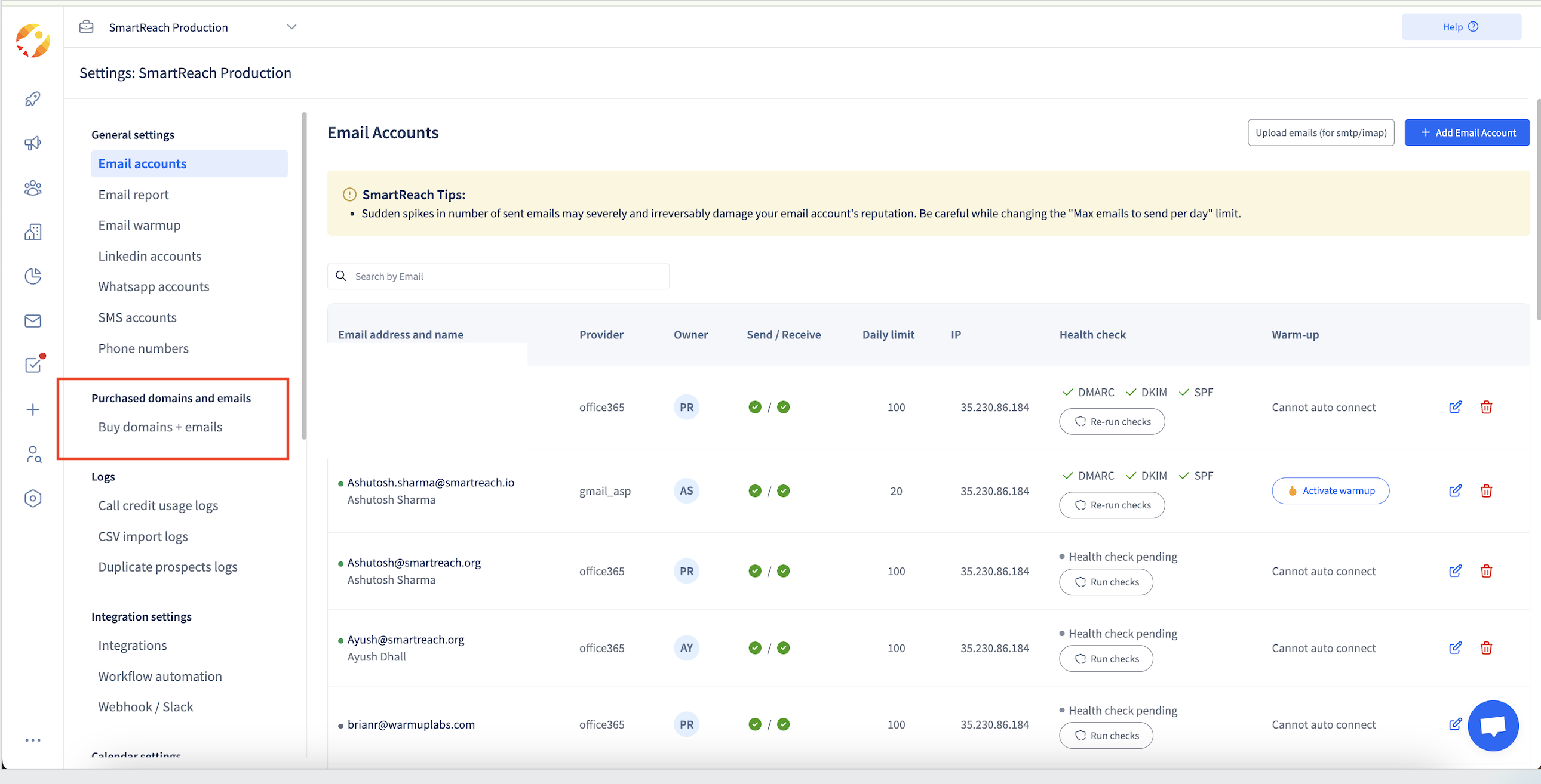 Q. How can I monitor if my domain and emails are properly authenticated? SmartReach handles all the technical setup like SPF, DKIM, and DMARC authentication. All emails purchased pass on these checks. Additionally, SmartReach runs spam and authentication checks to ensure your domains and emails are set up safely and correctly.