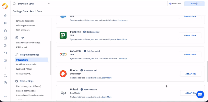 How to integrate SmartReach.io with Zoho?