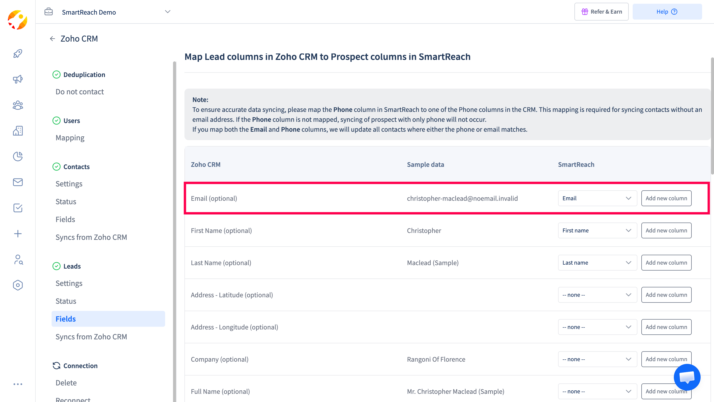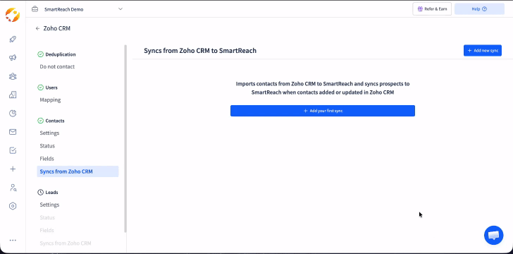 This completes the process of mapping the data between Zoho and SmartReach.